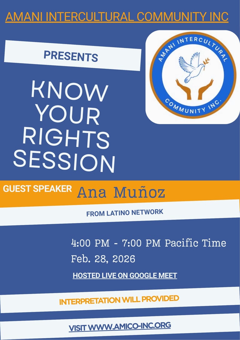 Amani Intercultural Community Inc. hosted an informative “Know Your Rights” session designed to educate community members about their legal rights, available resources, and how to respond in different situations. The event brought together individuals from diverse backgrounds who were interested in learning more about protecting themselves and their families.